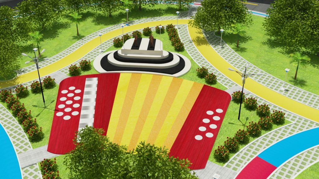 La obra «País Vallenato» representará dentro de la circunferencia de la glorieta el mapa de Colombia, donde en medio estará un acordeón y un sombrero vueltiao, que enaltece la confirmación de la UNESCO por la inclusión del Vallenato como patrimonio cultural e inmaterial de la humanidad.