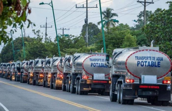 En La Guajira estamos suministrando 500 mil litros de agua por día con contratistas privados y a través de diferentes convenios con el Ejército y la Cruz Roja. Sin embargo, cumpliendo con los lineamientos del presidente Gustavo Petro, a partir de hoy reforzamos la capacidad de abastecimiento de agua con 40 nuevos camiones cisterna.“dijo el subdirector de Gestión de Desastres, Sneyder Pinilla Álvarez.