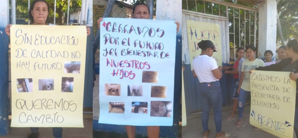 Con pancartas y cacerolas, padres de familia y estudiantes claman a las autoridades su pronta presencia en el corregimiento de Zapatosa, Cesar, debido a la emergencia que padecen niños y jóvenes de esta localidad, ya que desean recibir sus clases, pero en las condiciones que se encuentran las escuelas, es imposible.