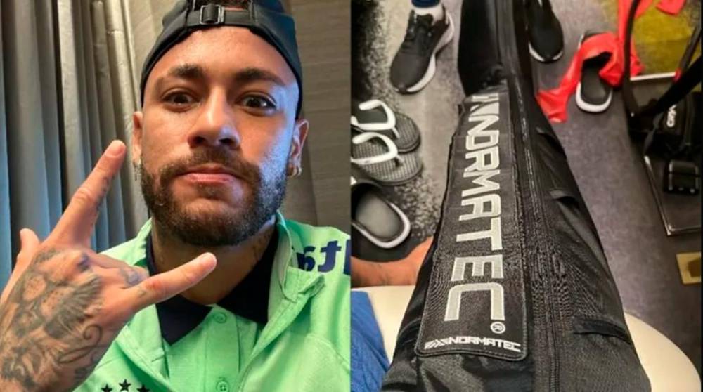 En las imágenes se ve que debe usar una bota compresora y según explicó el medio Marca, Neymar está utilizando tecnología de la Nasa que se basa en mejorar la circulación sanguínea, evitar calambres y eliminar ácido láctico que está acumulado en el lugar de la lesión.