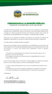 El alcalde de Barrancas, La Guajira, Vicente Berardinelli, con el ánimo de velar por el bienestar y oportunidades laborales de los profesionales, técnicos, tecnólogos y otros del municipio, se dirigió a la oficina de asuntos sociales del  Cerrejón, para revisar los compromisos de empleabilidad entre la empresa y la administración municipal.