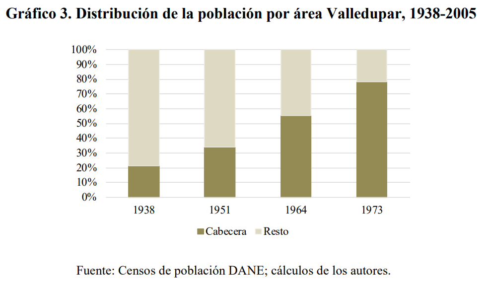 “Valledupar tuvo la tasa de crecimiento más alta entre las capitales de la región Caribe, pasando de tener aproximadamente 16.000 habitantes en 1938 a cerca de 160.000 en 1973”, escriben, en su Introducción al trabajo investigativo Historia del ordenamiento urbano de Valledupar, los autores Jaime Alfredo Bonet Morón y Diana Carolina Ricciulli Marín, publicado en la Revista tiempo&economía, volúmen 7, número 1, de la Universidad de Bogotá Jorge Tadeo Lozano, en 2020.