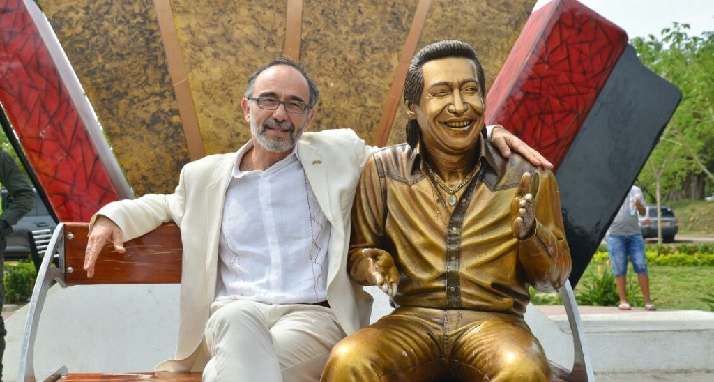 Abrazándolo, esa fue la posición que utilizó el embajador de Reino Unido, Peter Tibber, para tomarse una fotografía en la estatua de Diomedes Díaz, luego de su visita a la capital del Cesar el pasado martes 16 de enero. Tibber expresó su respaldo al folclor y posó para la foto y dijo, “es una foto necesaria, es para mí una foto importante de mi colección personal’.