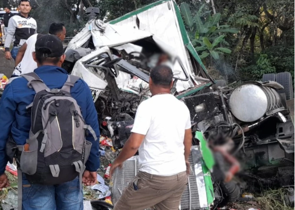 Un conductor que iba detrás de un tractocamión que transitaba la vía de Ocaña a Aguachica grabó con su celular un vídeo del grave accidente en el que murieron dos personas y una resultó herida. En medio de la angustia, el hombre ora y se lamentaba por la suerte de su compañero, quien no tuvo cómo controlar el vehículo.