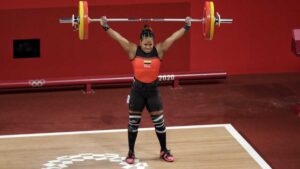 La pesista colombiana Mercedes Pérez logró el cuarto puesto en levantamiento de pesas y se...