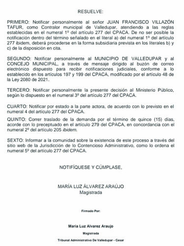 “Solo se admitió la demanda, eso quiere decir que la demanda cumplió con los requisitos legales para ser admitida, para ser estudiada por un juez de la República, de todas formas, nosotros estamos muy al pendiente del caso, un tema de interés tanto del Concejo de Valledupar, de todos los concejales, pero también un caso de interés de la comunidad en general.” – Juan Camilo Arias