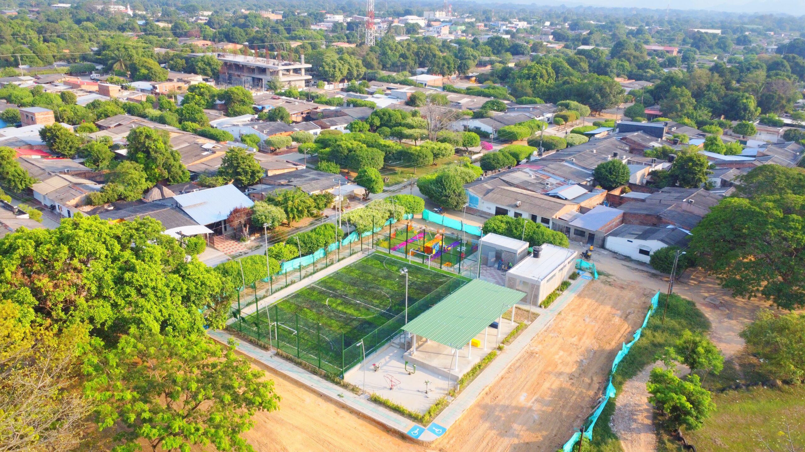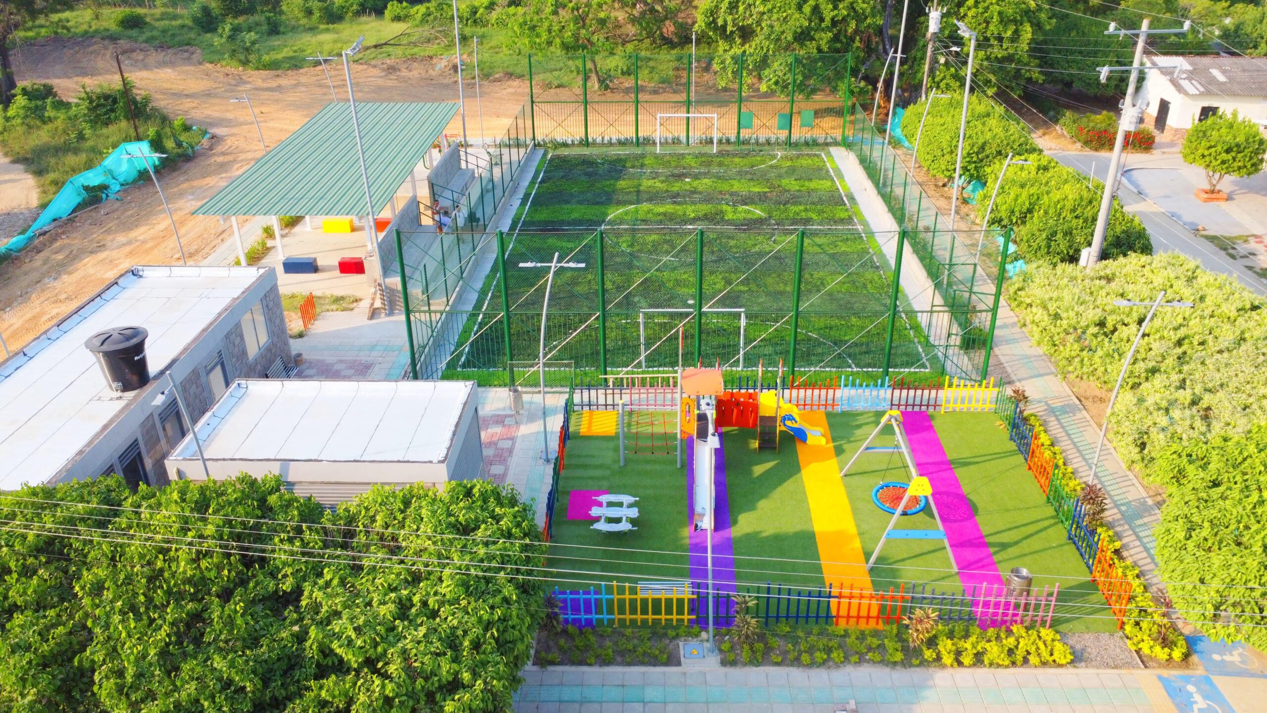 Este proyecto fue ejecutado con una inversión final de $1.154.990.897, por parte del Gobierno Nacional, cuenta con cerramiento perimetral y sus respectivas mallas contraimpacto, un area de gradería en concreto, zona de juegos infantiles, un gimnasio bio saludable, un auditorio abierto, cafetería, baterías sanitarias para damas, caballeros y personas con discapacidad, un salón comunal, así mismo cuenta con una zona de bicicletero, y una amplia zona verde distribuida en todo el proyecto.