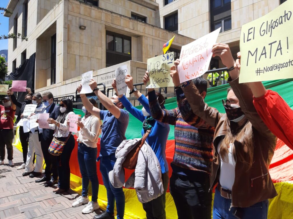 Es por eso que en horas de la tarde del pasado martes 20 de abril se presentó un plantón en el Palacio de Justicia contra el uso del glifosato.