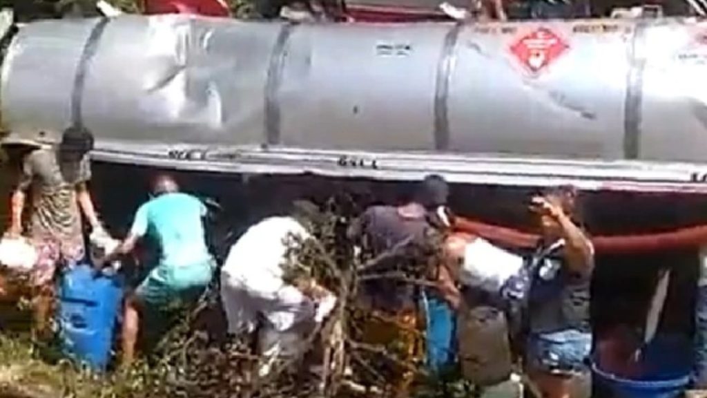 Saquean un camión cisterna volcado entre San Roque y el municipio de Bosconia