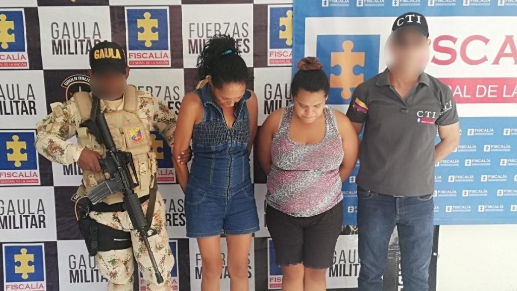Dos mujeres identificadas como Susana Andreina Beleño Cortés y Martha Patricia Bustamante Duica, fueron capturadas por miembros del CTI de la Fiscalía en un operativo conjunto con el Ejército en Valledupar, presuntamente por extorsionar a un ganadero en San Juan del Cesar (La Guajira).