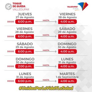 Horarios del toque de queda, ley seca y prohibición de actividades físicas en Valledupar durante este último fin de semana de agosto.