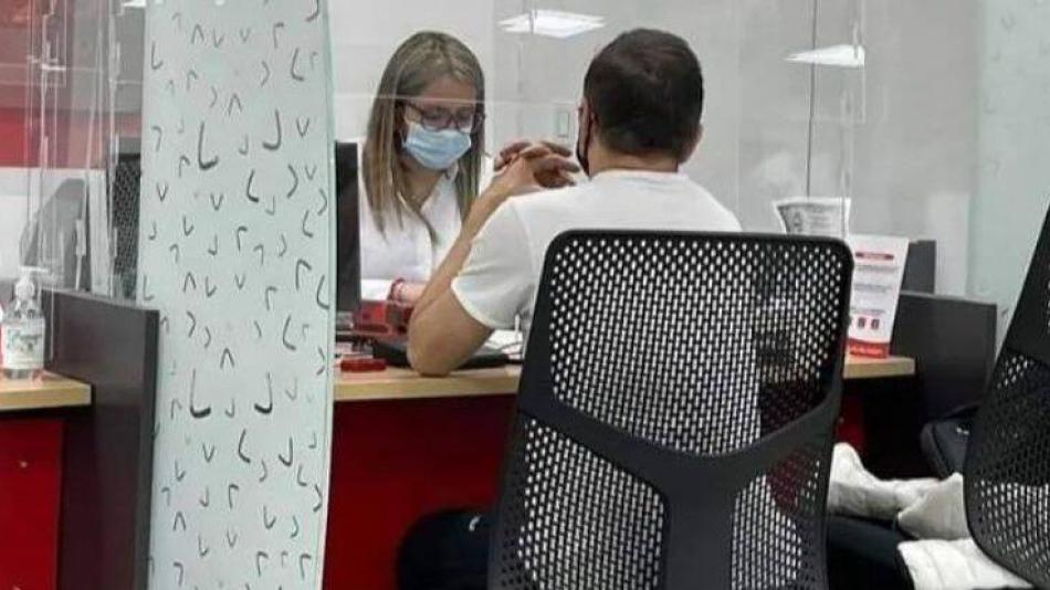 Dentro de las investigaciones se conocieron dos fotografías. En una de ellas, se ve a Jhonier en una oficina de Davivienda ubicada en el norte de Bogotá, esperando a que lo atendieran un asesor.