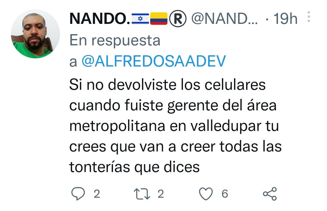 Una nueva salida en falso tiene en apuros a Alfredo Saade, el valduparense que no ha podido ganar la Alcaldía de Valledupar y ahora aspira a la presidencia de la República, en un trino lo burlan, lo señalan de populista y le sacan a relucir cuentas pendientes.